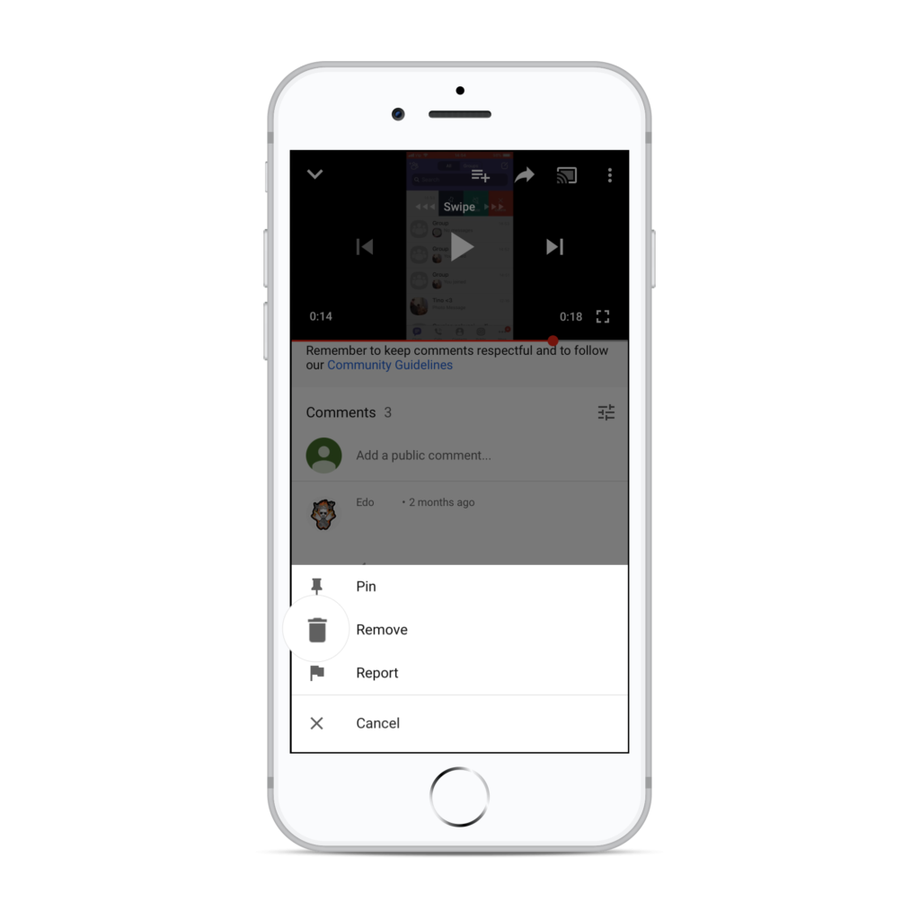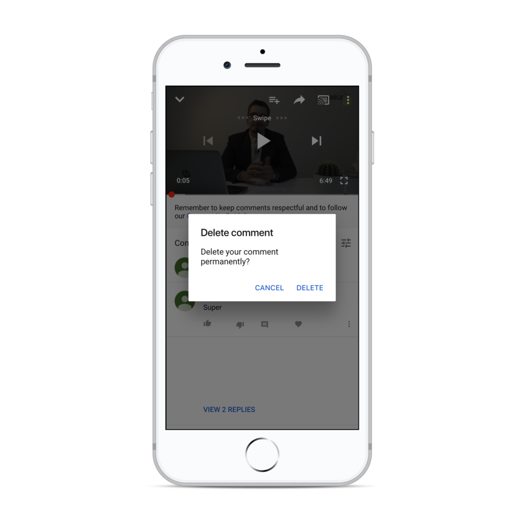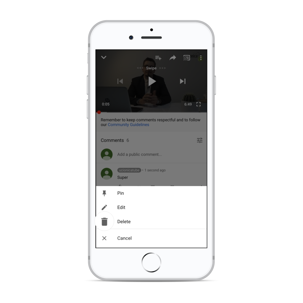 How to delete comments on YouTube app
