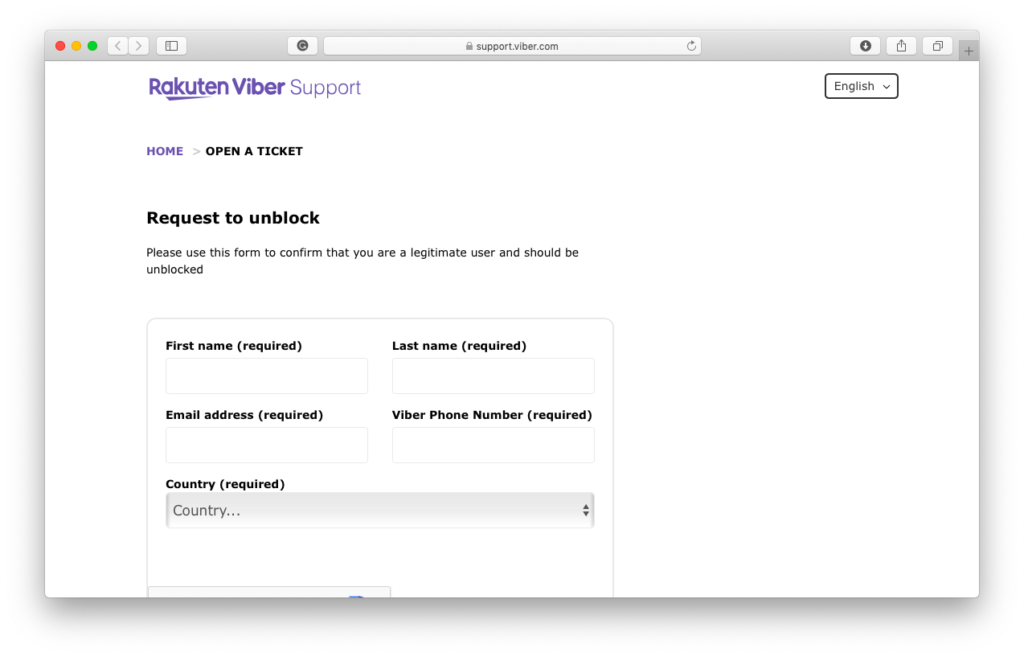 Confirm (reCaptcha) that you’re not a robot and tap Send Email to send Viber a request to unblock form.